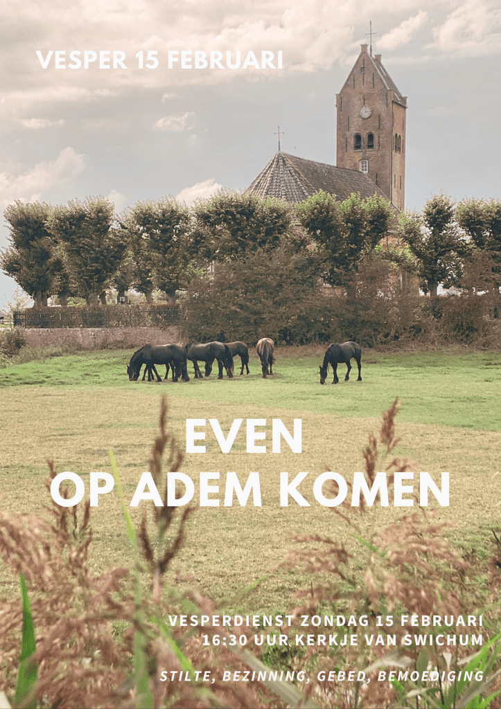 Op 15 februari om 16.30 uur gaat Edgar Groeneveld voor in een vesper. Die wordt gehouden in het kerkje van Swichum. Het thema is: “Even op adem komen”.