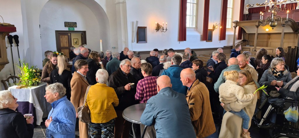 Na de dienst is er tijd om elkaar te ontmoeten. Voor koffie, thee, fris en koek wordt gezorgd. Neem je zelf een kopje mee?